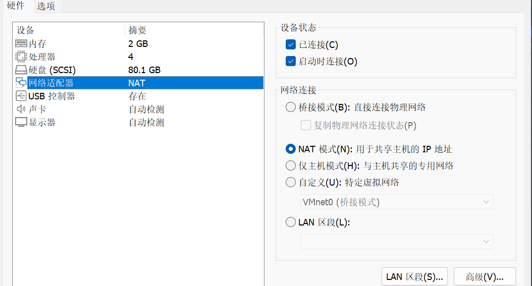 - 打开虚拟化软件网络设置