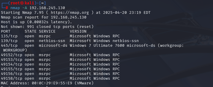 nmap -A ip地址