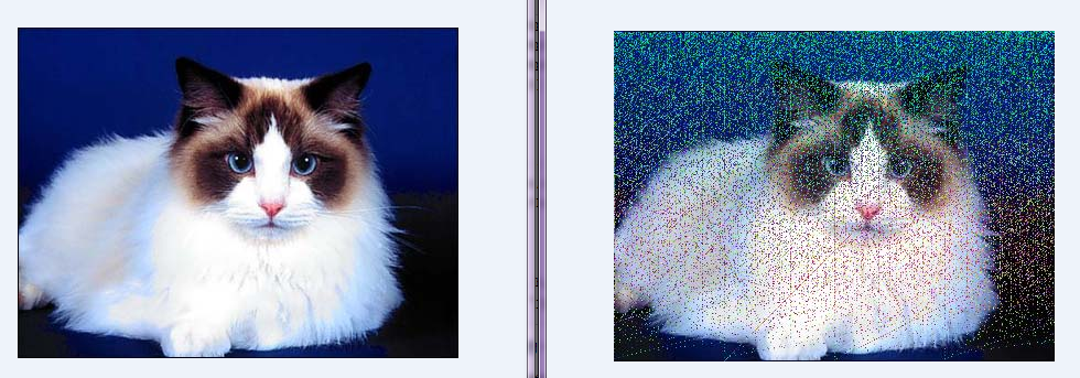 对于图片来说有固定的height 和width ,因此我们将该数组转化为 int [height][width] 的二维数组,我们假设该二维数组表示图像上面的各点值,通过算法 取出该点 上下左右的数值,对其做数学上面的取平均值或者,使用方差等数学方法,我们即可得到新的 二维数组,再将该二维数组转给我们的一维数组,并通过setRGB 方法 将像素值覆写,得到图片。