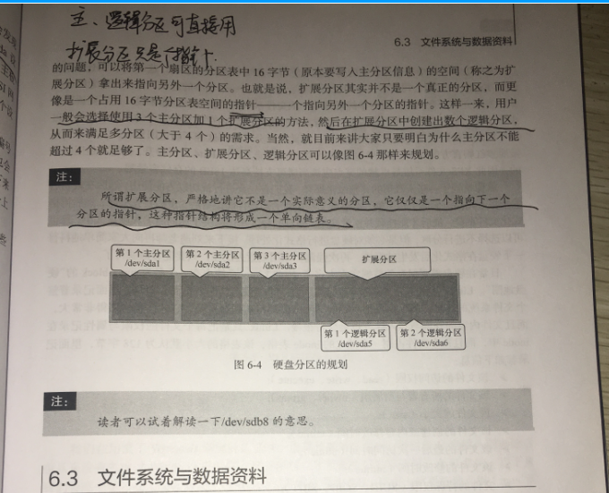 于是为了解决分区个数不够的问题,可以将第一个扇区的分区表中16字节(原本要写入主分区信息)的空间(称之为扩展分区)拿出来指向另外一个分区。也就是说,扩展分区其实并不是一个真正的分区,而更像是一个占用16字节分区表空间的指针—一个指向另外一个分区的指针。这样一来,用户一般会选择使用3个主分区加1个扩展分区的方法,然后在扩展分区中创建出数个逻辑分区,从而来满足多分区(大于4个)的需求。当然,就目前来讲大家只要明白为什么主分区不能超过4个就足够了。