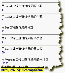 Response.Write("<hr>用Count()得出查询结果的个数<br>");