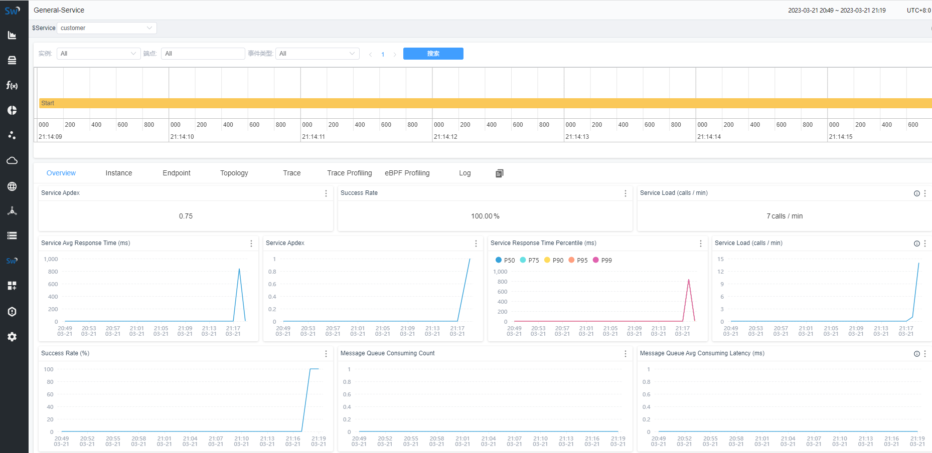 为此Skywalking安装配置成功,服务运行状态采集成功。
