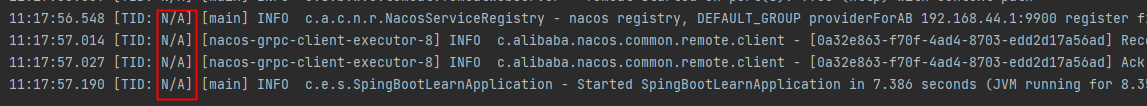 大家注意到[%tid]就是用来标识同一个请求的,四个服务启动后,控制台输出的tid都是N/A