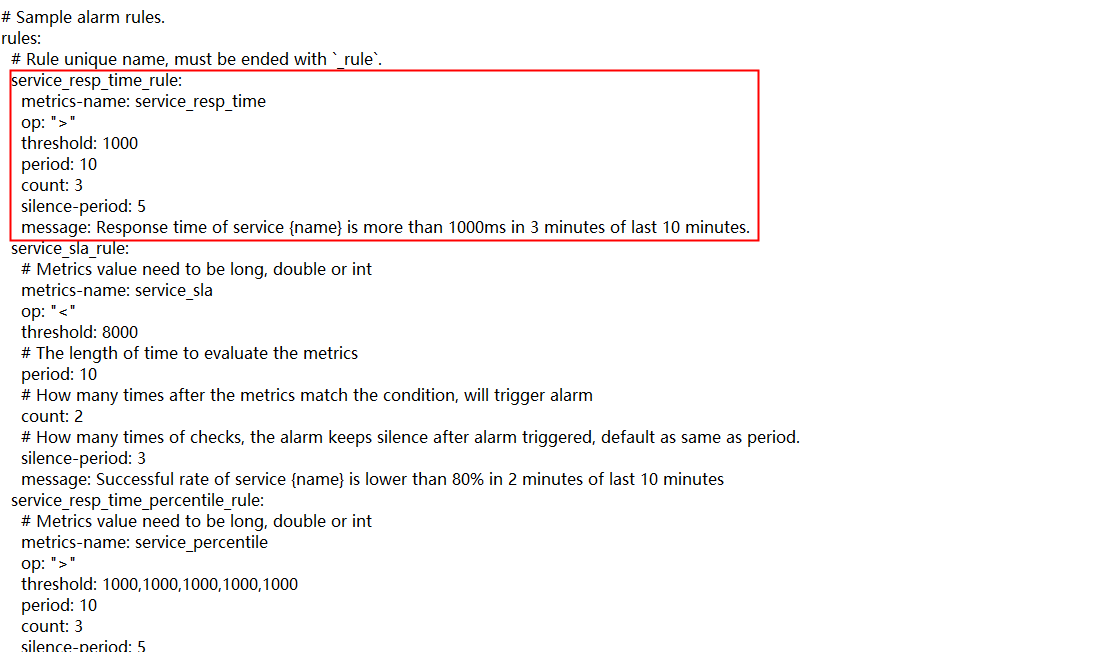 打开SkyWalking的APM文件目录,进入config目录,打开alarm-settings.yml,这个文件就是大部分默认的监控规则,我们只需改改参数即可使用