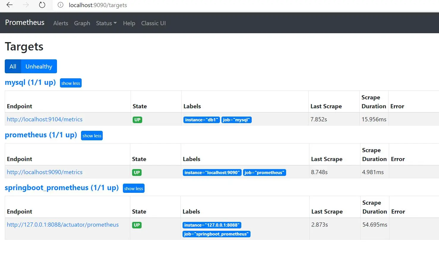 - 监控实体需要提供prometheus抓取的接口,mysql的export,springboot 的actuator.