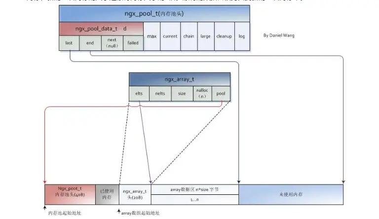 array->elts = ngx_palloc(pool, n * size); 'n个数组数据地址,在内存池中的位置'