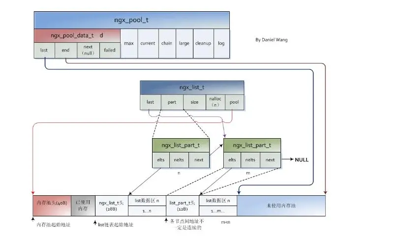 ngx_list_part_t *last; '指向链表中最后一个ngx_list_part_t,用于管理整个链表,含义很明确'