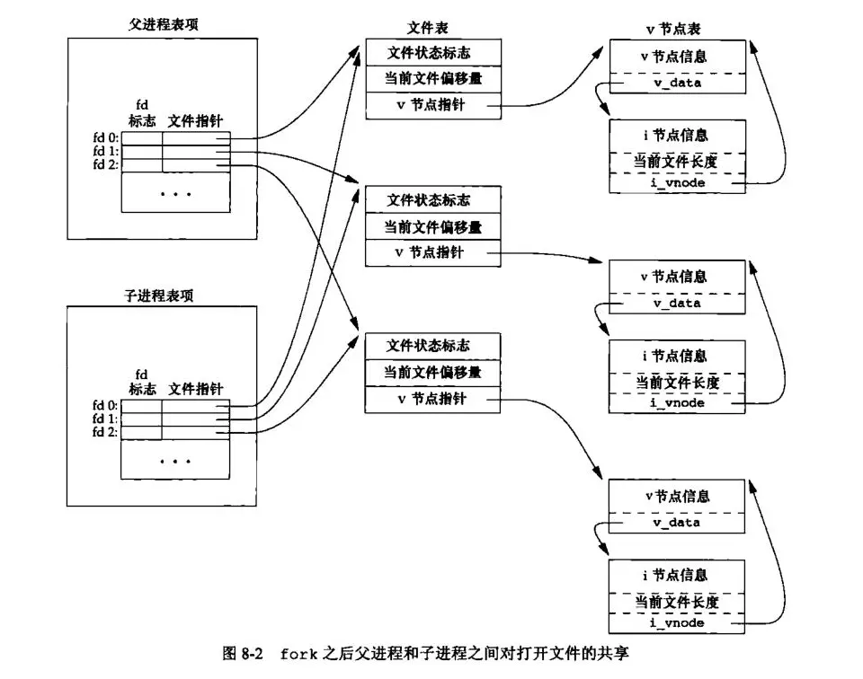 - fork之后经常跟随exec。很多实现并不执行一个父进程数据段、栈和堆的完全副本,作为代替使用了写时复制(Copy-On-Write,COW)