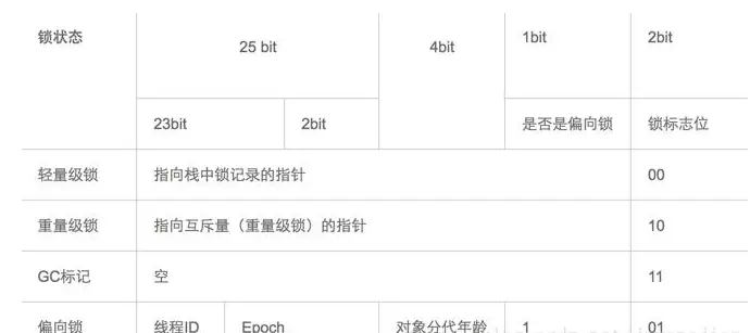 | 锁状态 | 25bit | 4bit | 1bit(是否是偏向锁) | 2bit(锁标志位) |