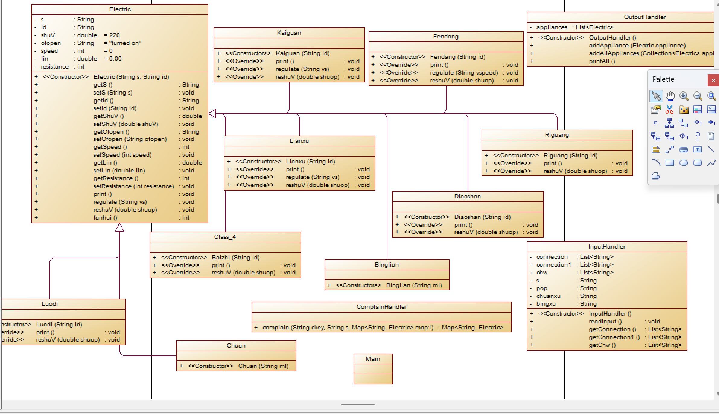 第一次家居强电电路模拟程序相对来说比较简单,但为了下一次迭代就要好好设计类,尽量让下一次代码能够复用。本次程序我采用Device作为设备主类,控制设备以及受控设备都继承来自Device,第二次创建了串联与并联的类,继承Device,知识点主要涉及到利用继承来对代码复用,以及利用HashMap来存储相关的数据,然后利用正则表达式来对输入的信息进行分割,最终将结果输出,第二次家居强电电路模拟程序相对于第一次程序难度大幅提升,串并联电路结合出现问题导致输出总是达不到想要的结果,难度对我来说大幅提升。