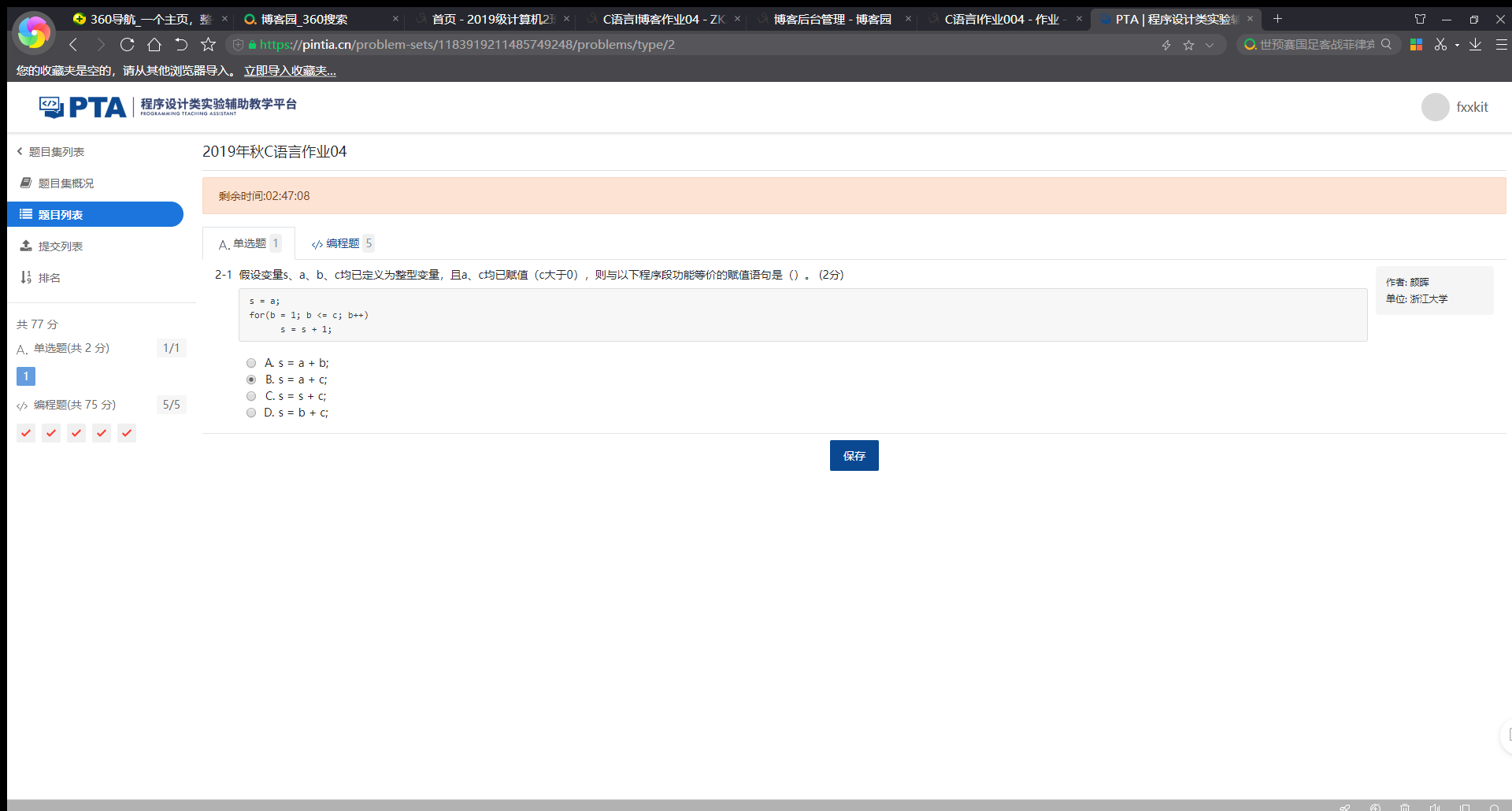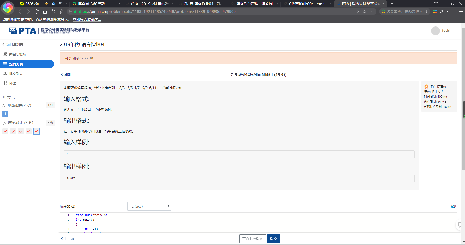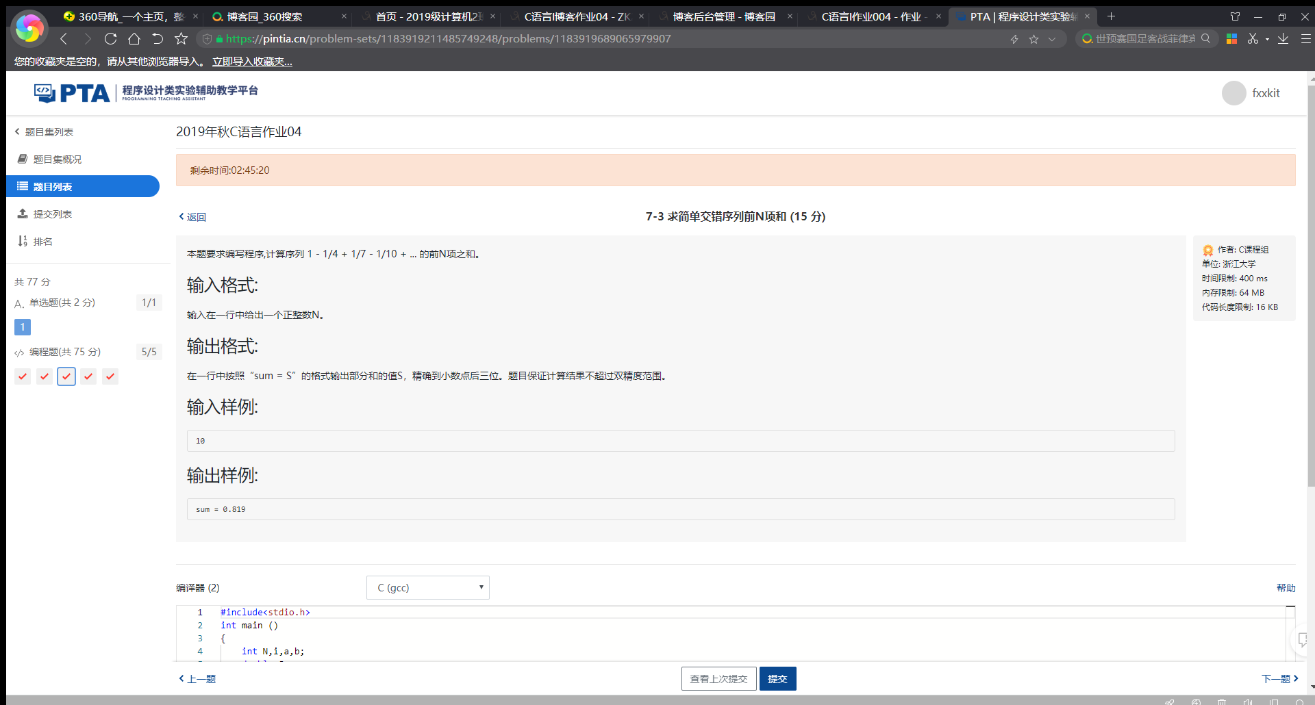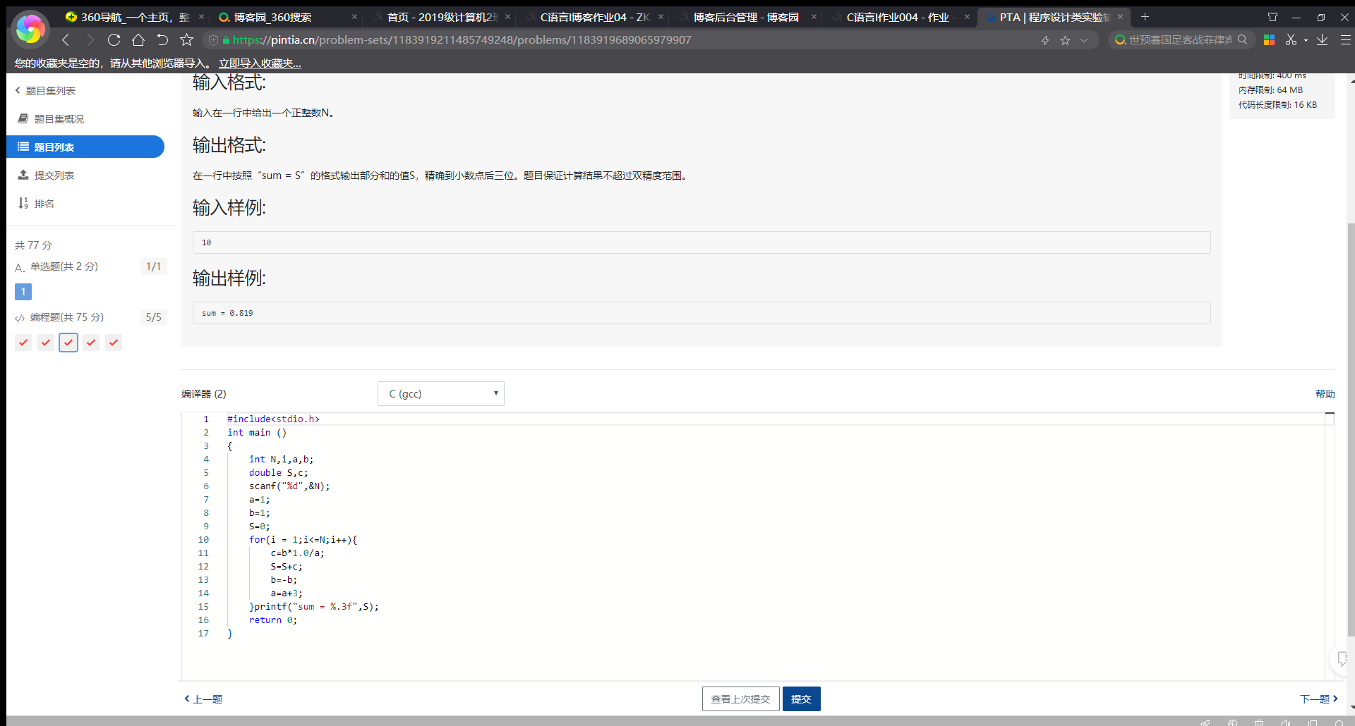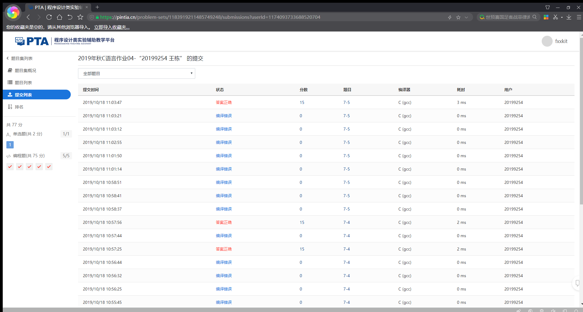 7-3.4 PTA提交列表及说明: