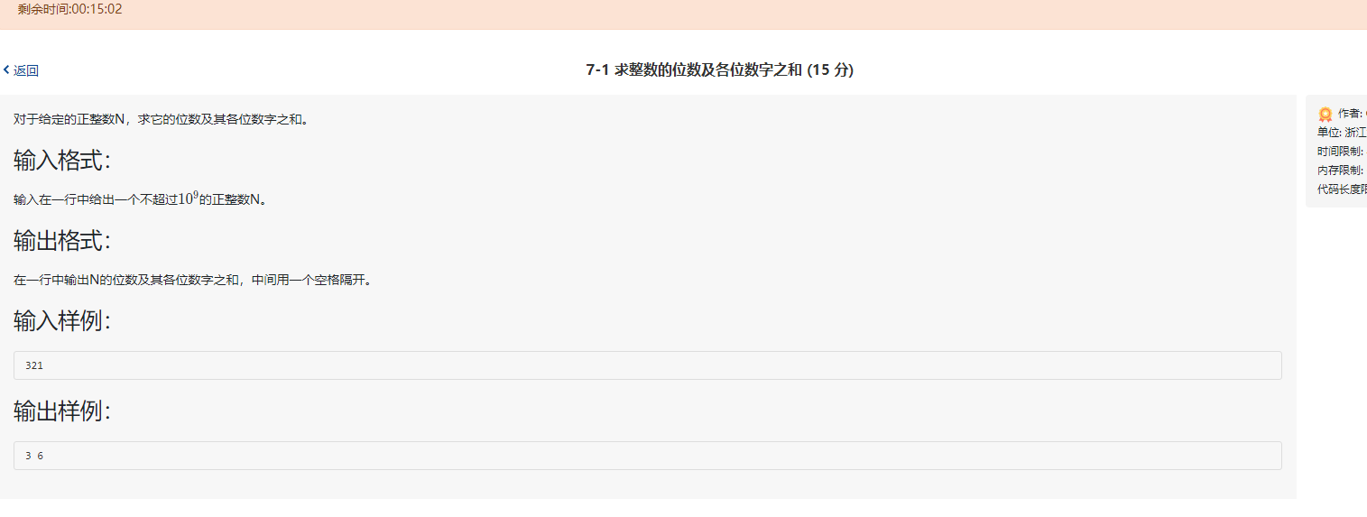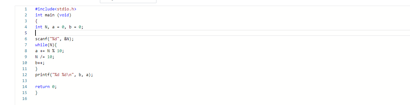 数据处理:运用了while循环语----a += N % 10;N /= 10;b++;