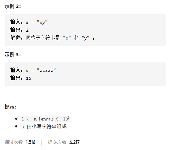 对于T2,我们可以考虑用数学方法处理。即统计每一个连续的相同的子串长度,并用求和公式求出值。