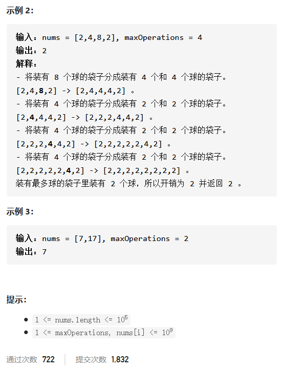 int minimumSize(vector<int>& nums, int maxOperations) {
