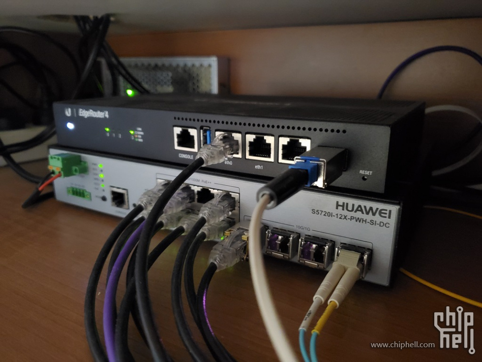 我这里整个环境的拓扑是 er-4 的 sfp 口连接光模块,eth0 口接华为交换机