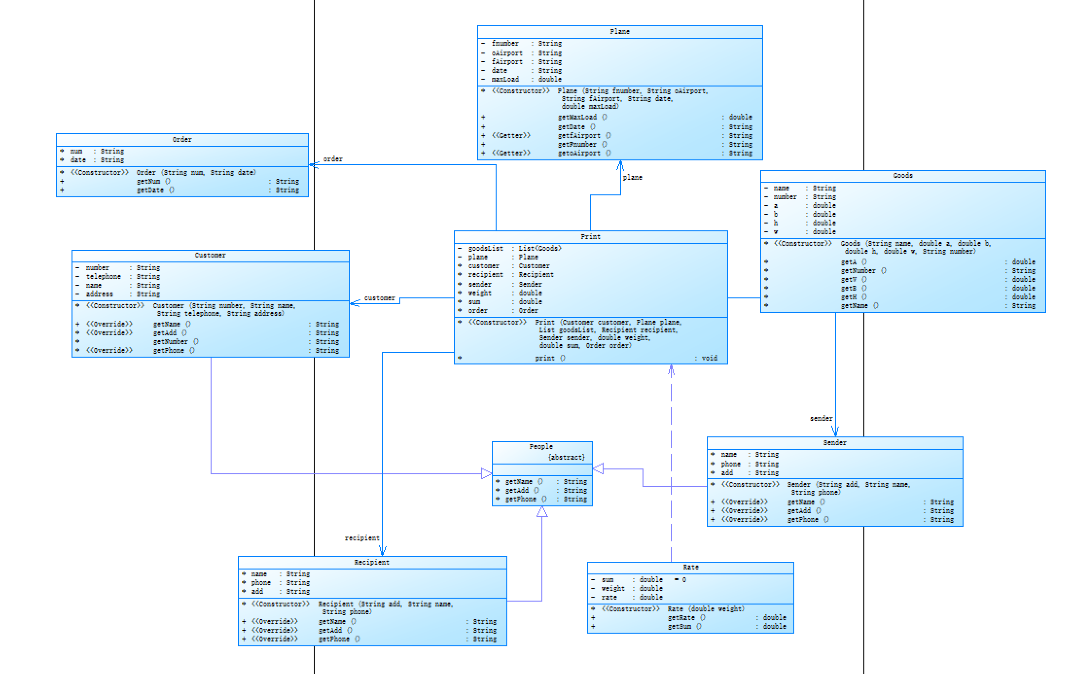 Customer:继承自 People,代表客户,增加了客户编号属性