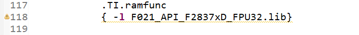 使用F021_API_F2837xD_FPU32.lib 库函数遇到的问题 warning #10068-D: no matching section