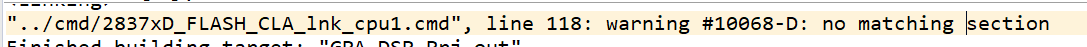 "../cmd/2837xD_FLASH_CLA_lnk_cpu1.cmd", line 118: warning #10068-D: no matching section