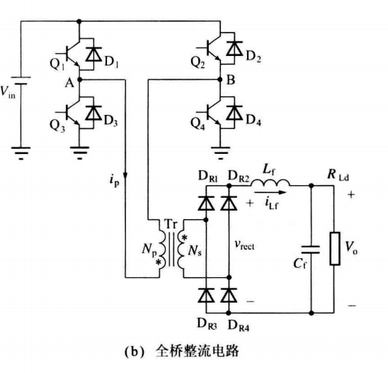变压器原边电压是以Vin为幅值,D为占空比的方波。变压器副边