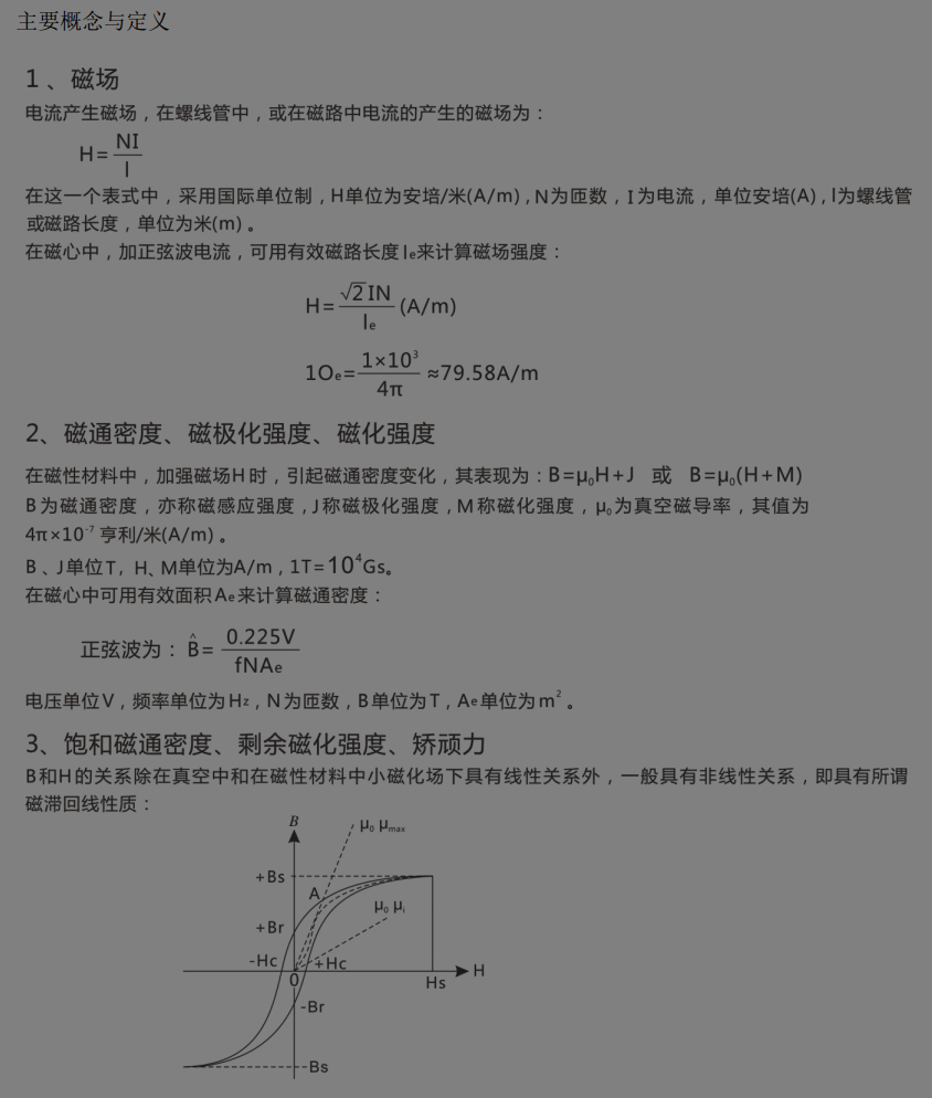 天通编写的磁芯概念知识,在此记录一下,方便随时随地可以查看