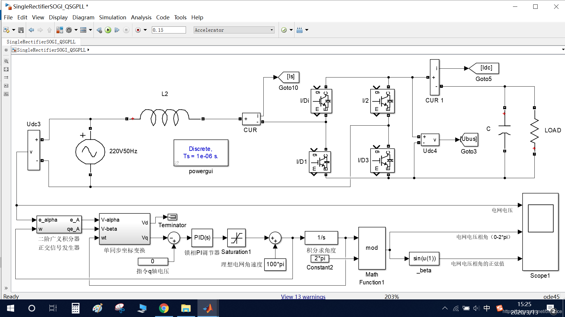 单相整流软件锁相环(PLL)simulink仿真及锁相环实物模块制作