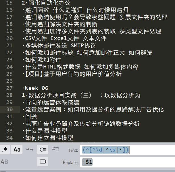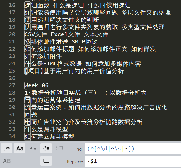为每行开头添加一个 ·