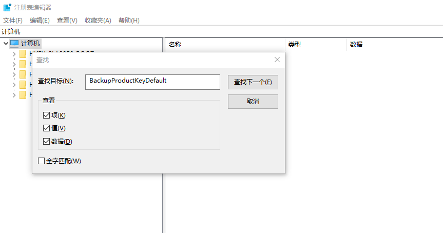 也可以Ctrl+F打开搜索,搜索:BackupProductKeyDefault
