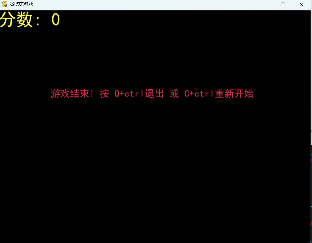 message("游戏结束! 按 Q+ctrl退出 或 C+ctrl重新开始", red)