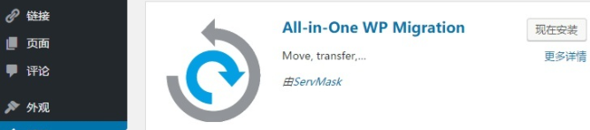 登陆 WordPress 后台,搜索并安装插件 All-in-One WP Migration。