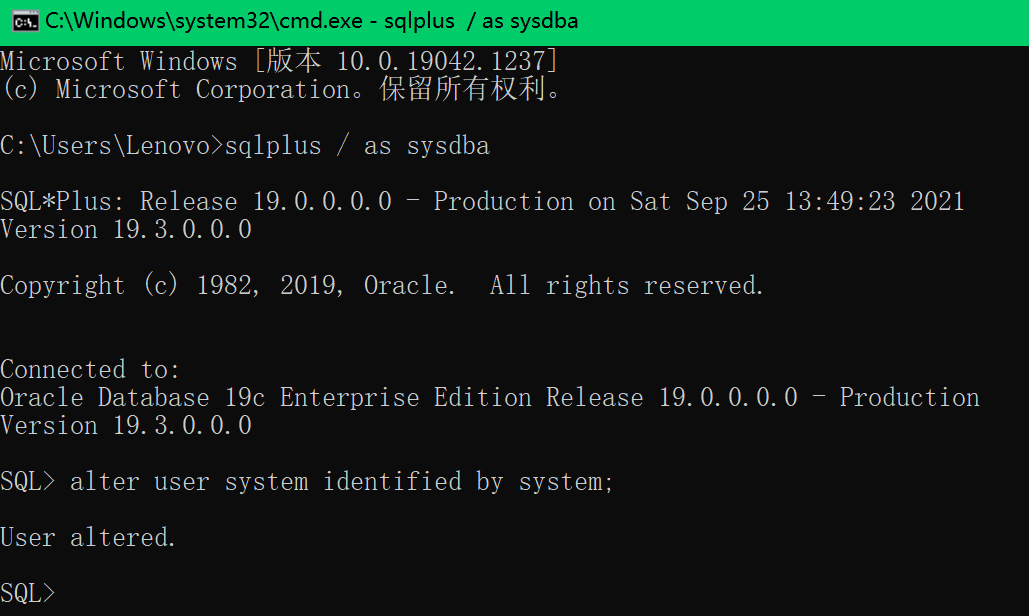 以用户名system密码dhee为例,即命令为alter user system identified by dhee;