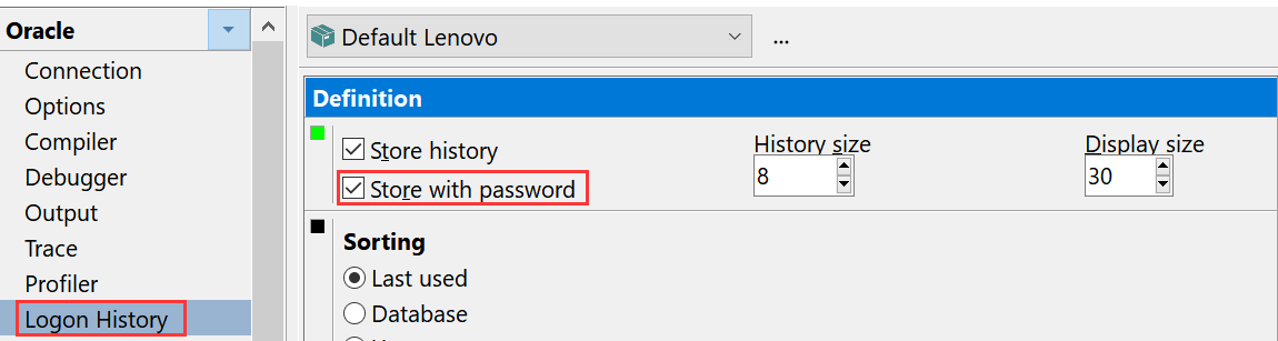 保存账户密码:Configure--> Preferences --> Oracle --> Logon History --> Store With Password