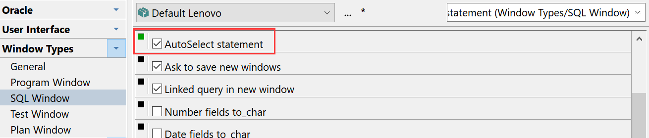 设置F8只执行当前行,勾选AutoSelect statement,勾选后Ctrl+F8执行全部SQL语句