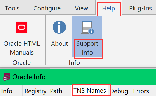 菜单Help->Support Info->TNS Names,可以查看Oracle的tnsnames.ora。