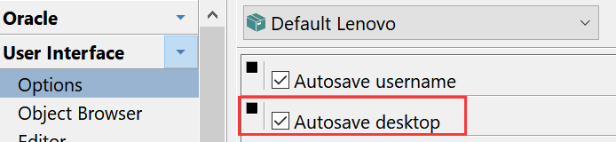 (2)Tools->Perferences->User Interface->Options的右边,将"Autosave desktop"勾选.