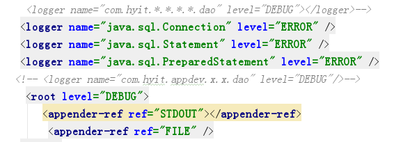<logger name="com.hyit.appdev.x.x.dao" level="DEBUG"></logger>-->