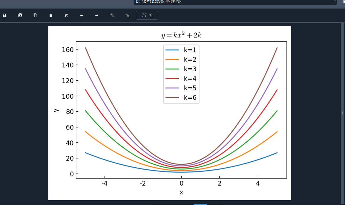 plt.plot(x, fx(x, k), label=f'{k=}')