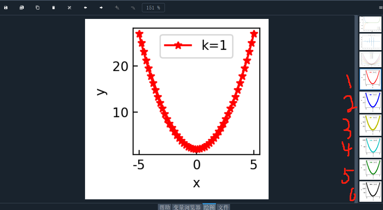 plt.plot(x, fx(x, i), s[i-1], label=f'k={i}')