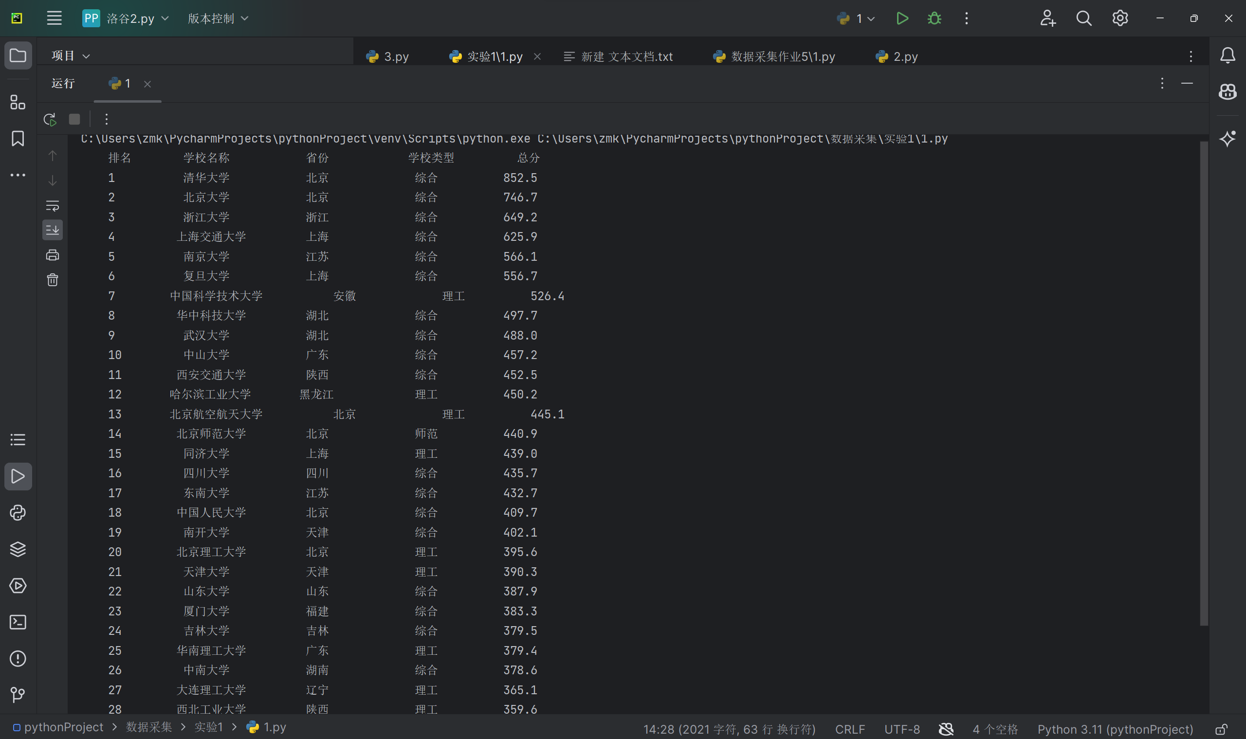 def fillUnivList(ulist, html): # 将html页面放到ulist列表中(核心)