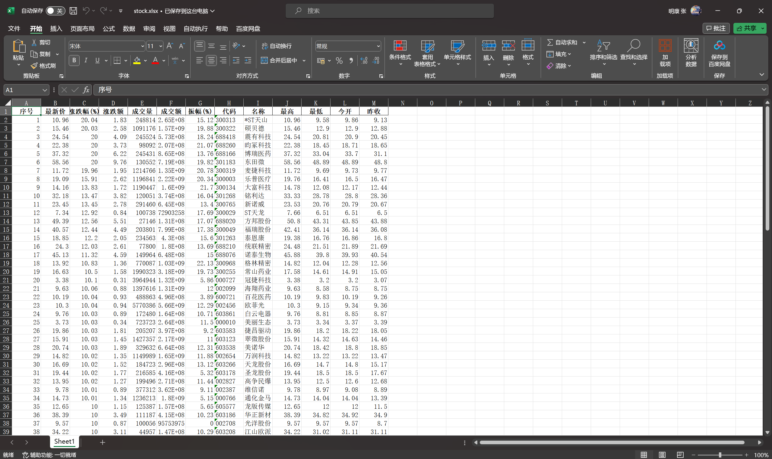 columns={'f2':'最新价','f3':'涨跌幅(%)','f4':'涨跌额','f5':'成交量','f6':'成交额','f7':'振幅(%)','f12':'代码','f14':'名称',