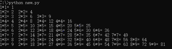 print(str(second)+"*"+str(first)+"=",second*first,end="\t")