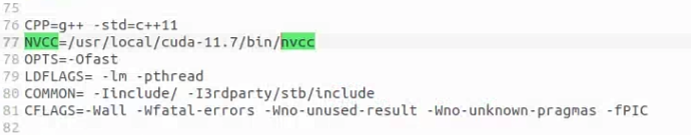 make出现/bin/sh: 1:nvcc:not found,去/usr/local/cuda-11.7/bin中找到nvcc的目录并根据目录在makefile中进行修改