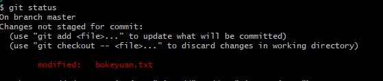 上面告诉我们bokeyuan.txt被改动过 并且待提交