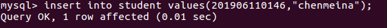 (33)向表格student中插入具体内容:insert into 表格名(名)values(value);