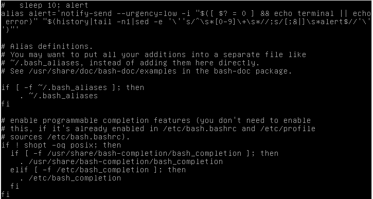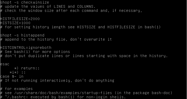 (19)查看主文件夹下.bashrc文件内容,后面50行不显示,只显示前面几行