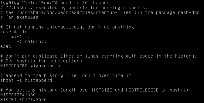 (20)查看主文件夹下.bashrc文件内容最后20行