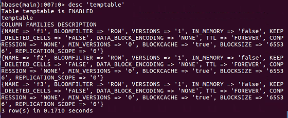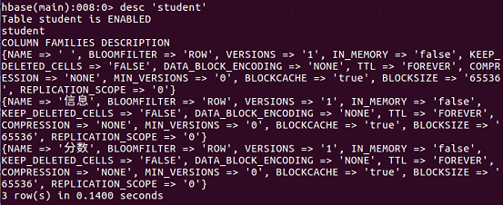 3.列出HBase中所有的表信息list